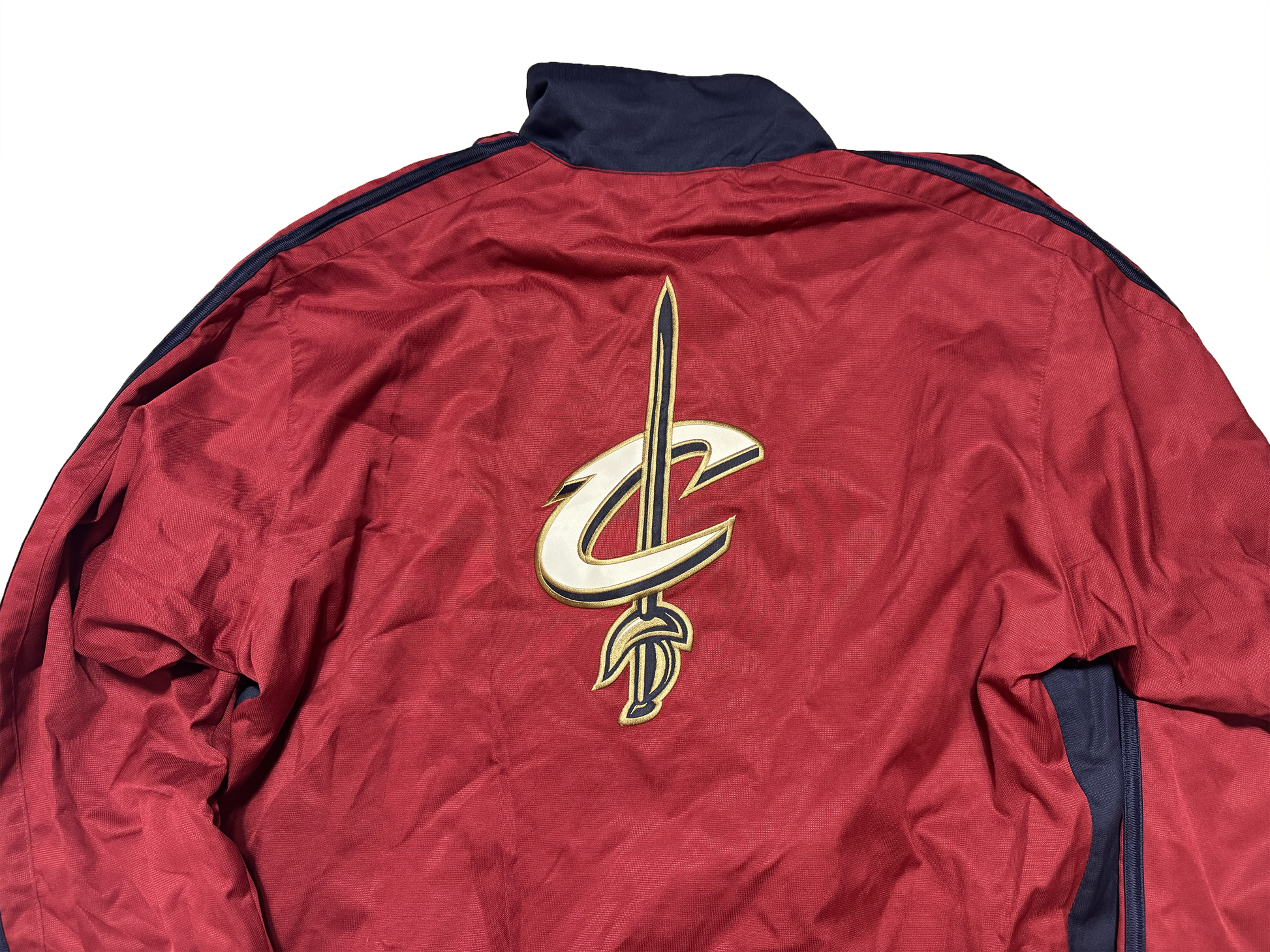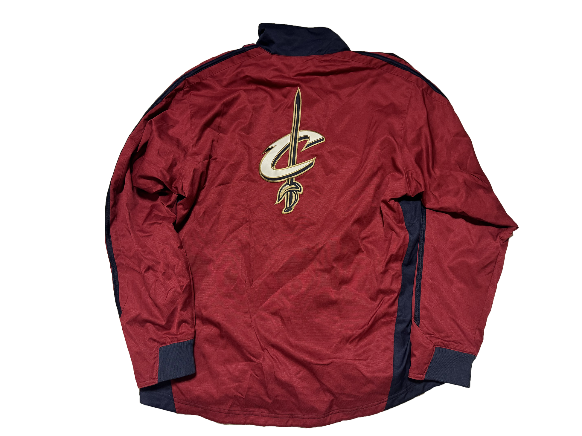 Rep the LeBron James Cleveland Cavs era perfectly with this Adidas brand zip up jacket donning the alternate Cavaliers logos from the 2000s.