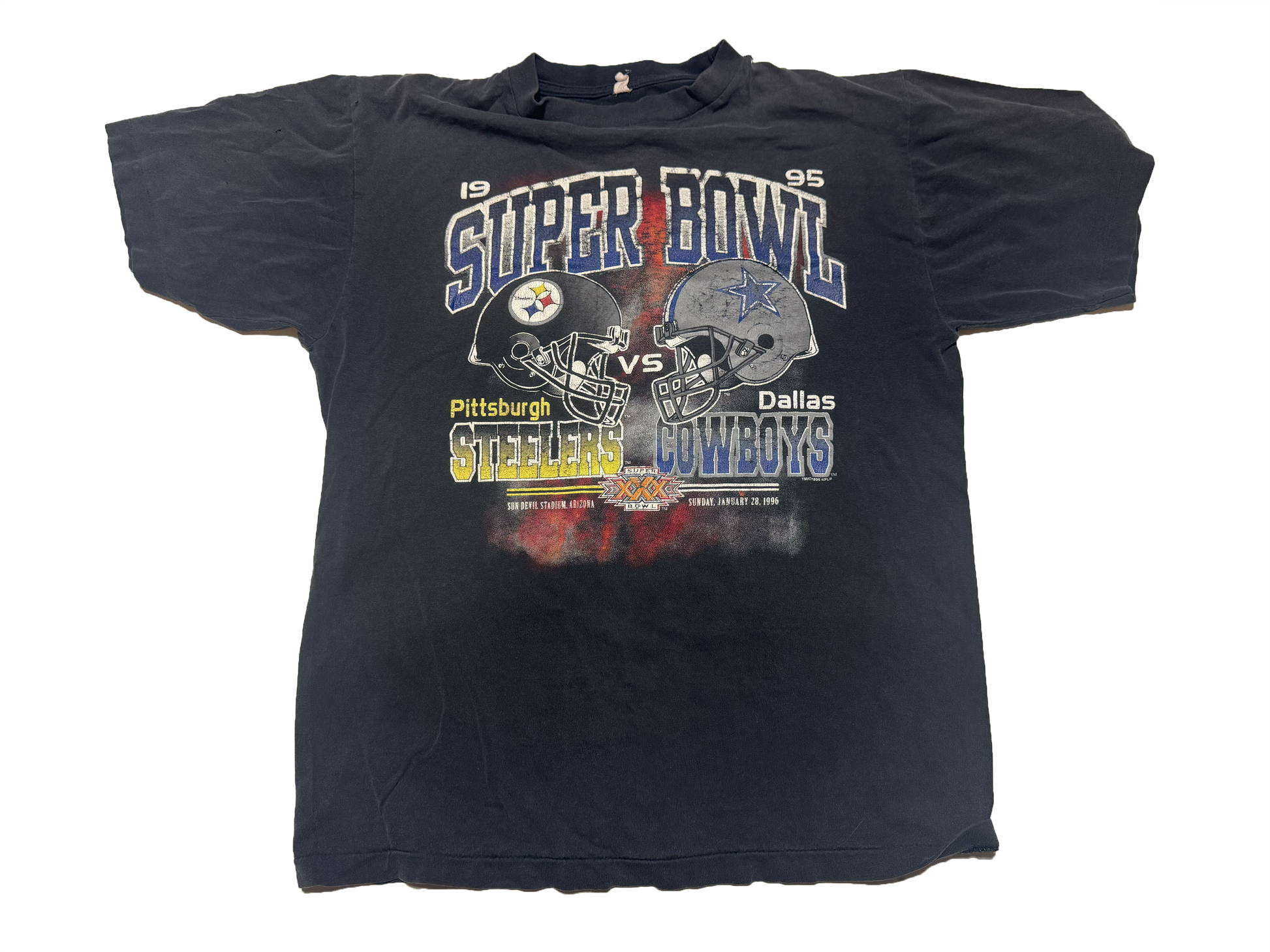 Relive the 1996 NFL Super Bowl with this Dallas Cowboys vs Pittsburgh Steelers shirt. Not sure what brand this shirt is based off the tag, but an elite throwback to the 90s.