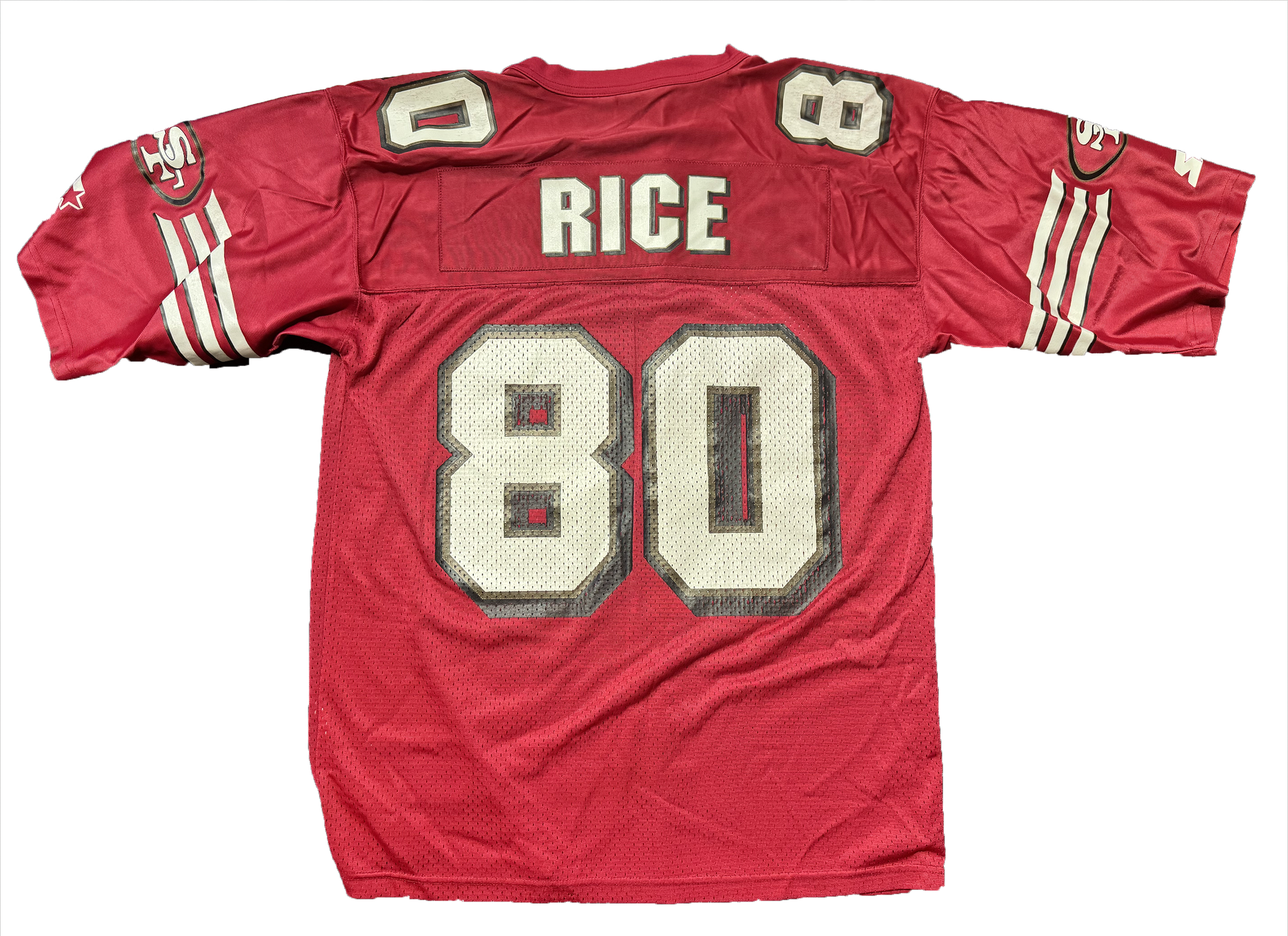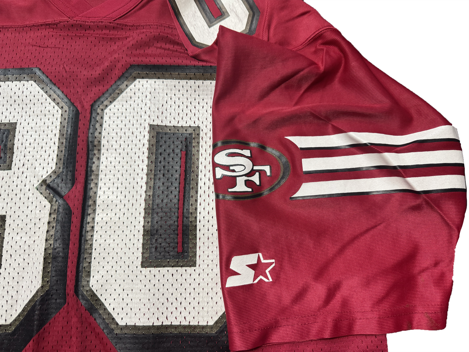 Starter brand Jerry Rice San Francisco 49ers jersey from the 1990s in a size medium. Rep one of the NFL's all-time greats with this iconic jersey