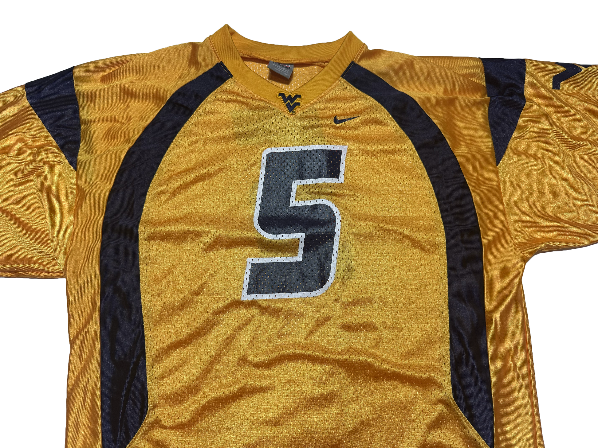 One of the most electrifying players in WVU football history - Pat White! This Nike jersey does not feature White's name on the back but is from the 2006-2007 era when White was dominating the CFB world.